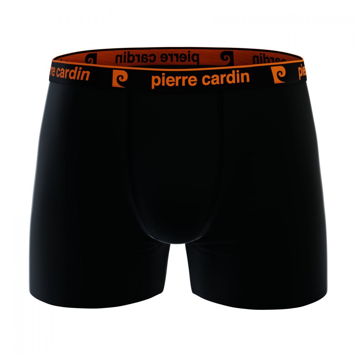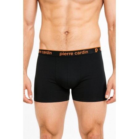 4 Boxers PIERRE CARDIN, coloris noir avec écriture Marque orange/rouge/bleu/jaune.