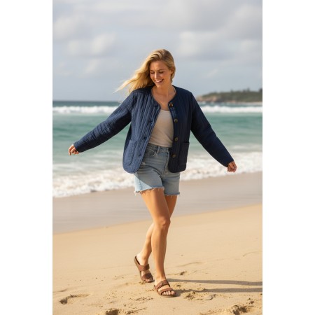 Veste matelassée en gaze de coton, coloris marine ; légère et tendance
