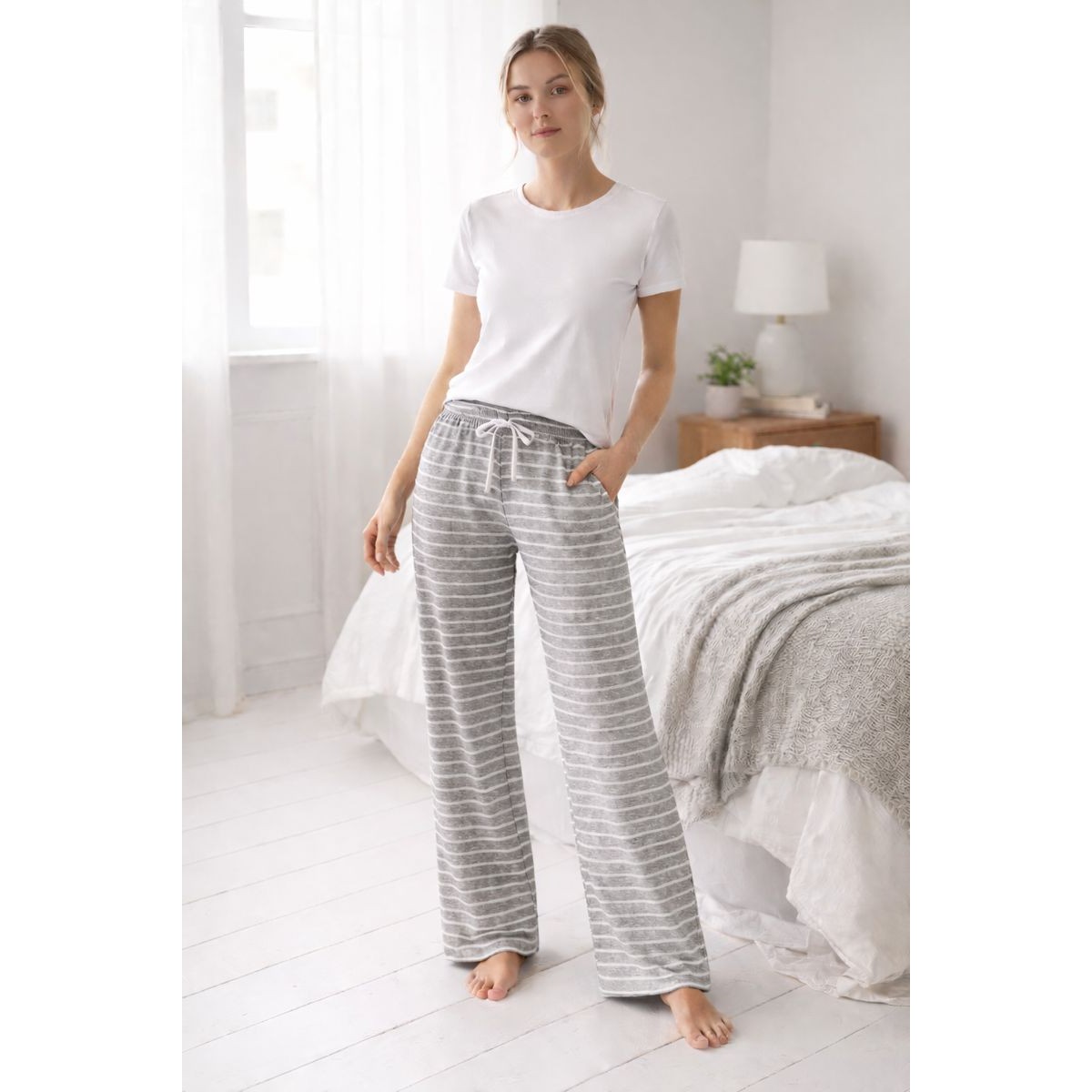 Référence: BAS DE PYJAMA GRIS CHINE RAYE BLANC