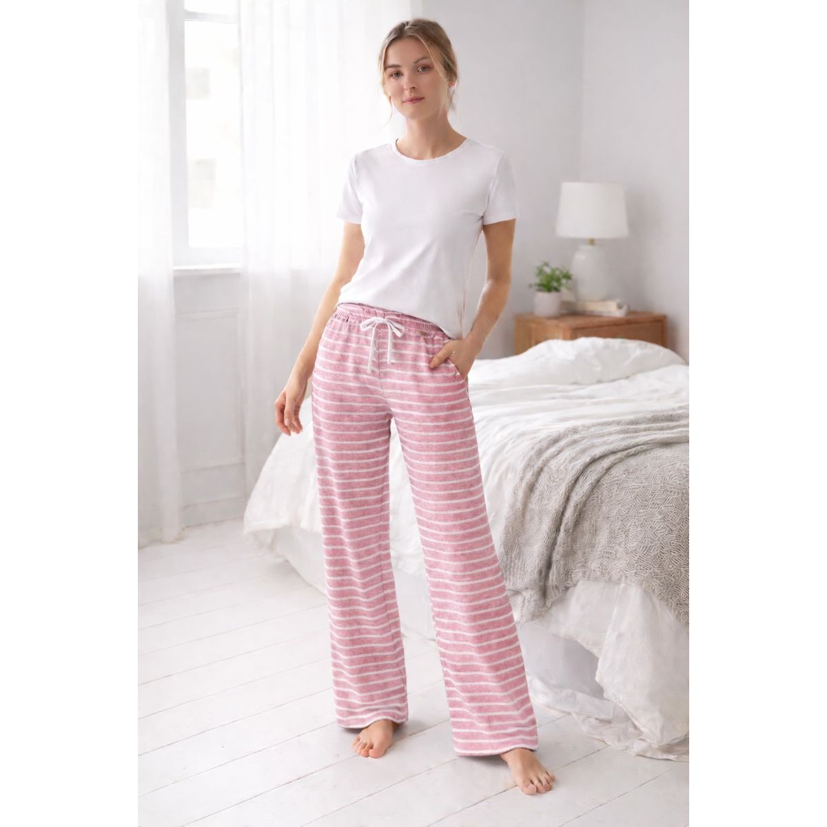 Référence: BAS DE PYJAMA ROSE RAYE BLANC
