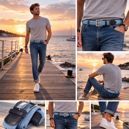 Ceinture tressée Bil Tornade bleue : élégance décontractée et confort ajustable