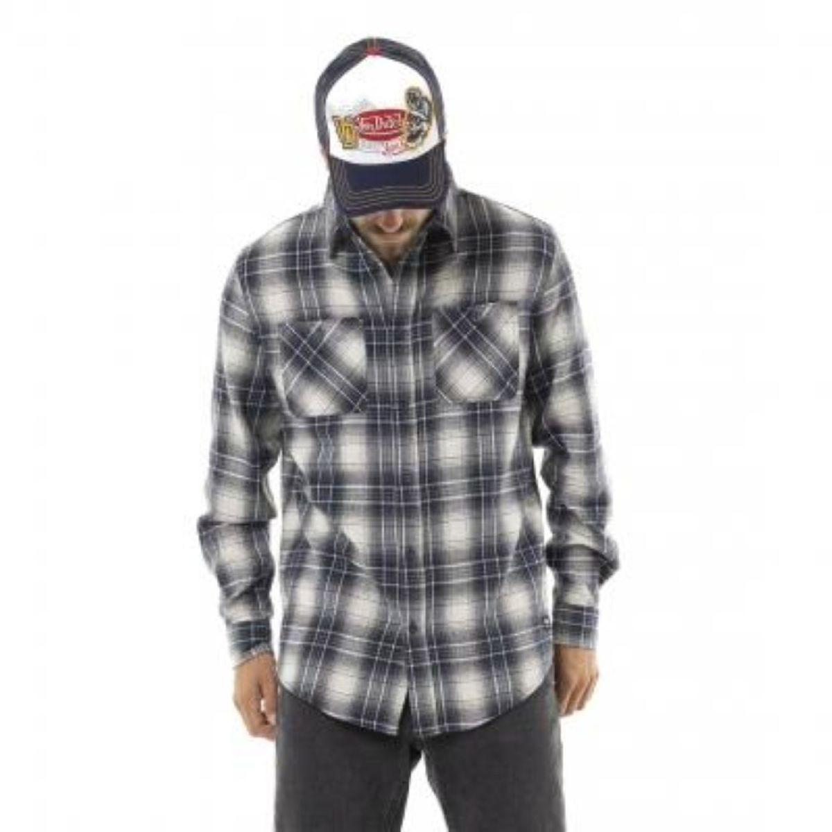 Chemise flanelle VON DUTCH, carreaux gris, bleu . Manches longues.