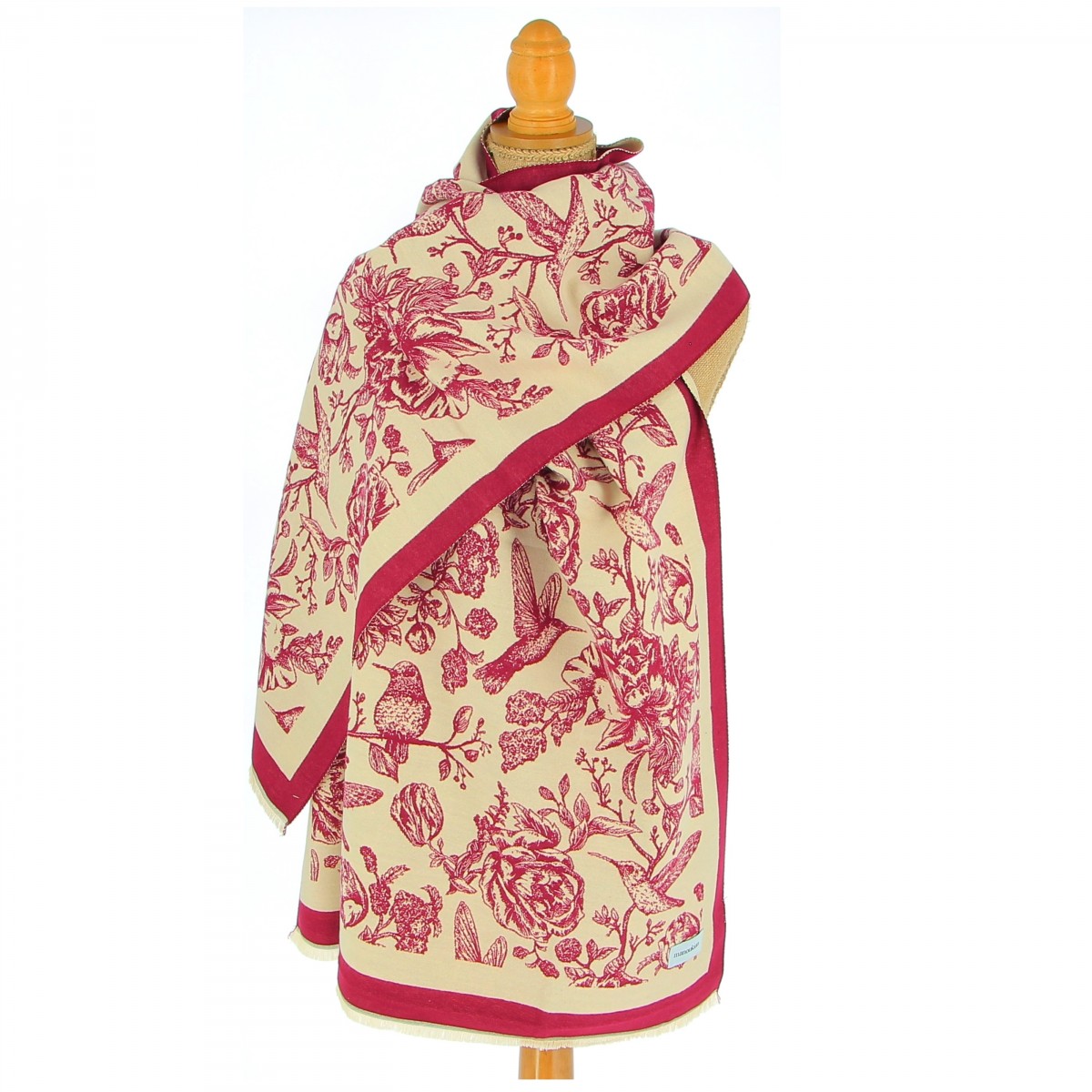 Echarpe Manoukian imprimée fleurs et oiseaux ; l'élégance, tout simplement