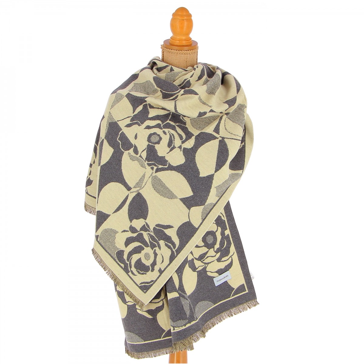 Sublimez vos tenues avec cette écharpe Manoukian réversible, agrémentée de grosses fleurs grises et écrues, parfaites pour rehausser un look d’hiver ou de mi-saison.
