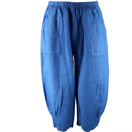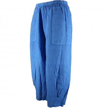 Référence: PANTALON COURT LARGE 100% LIN VEGAN BLEU VIF 6353