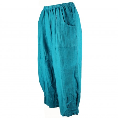 Référence: PANTALON COURT LARGE 100% LIN VEGAN TURQUOISE 6353
