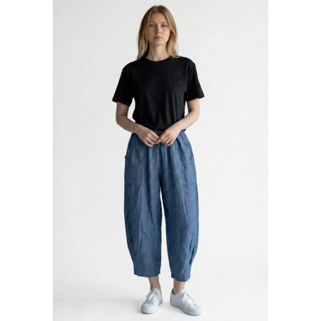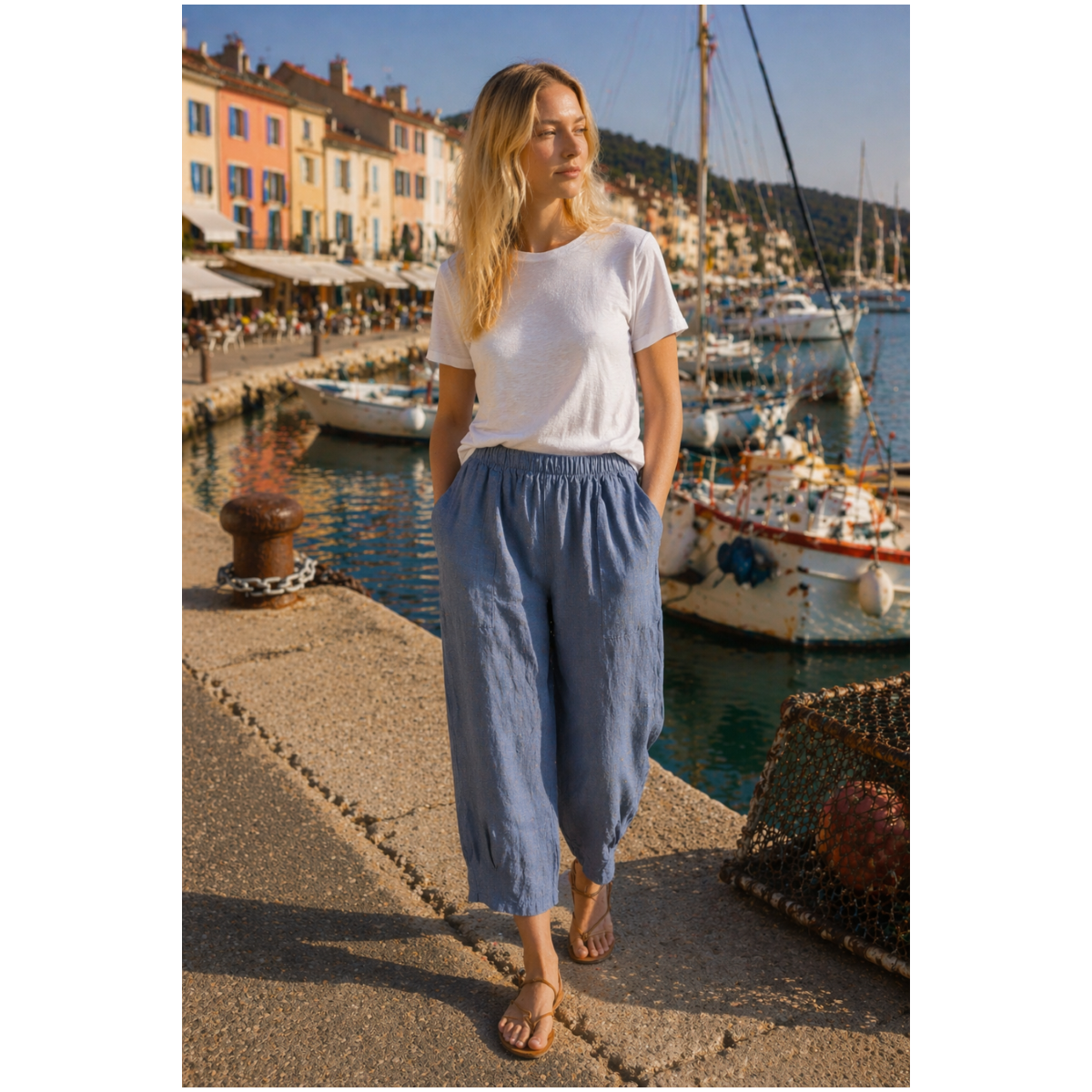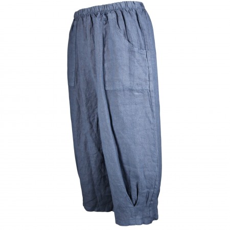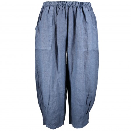 Référence: PANTALON COURT LARGE 100% LIN VEGAN BLEU JEAN 6353