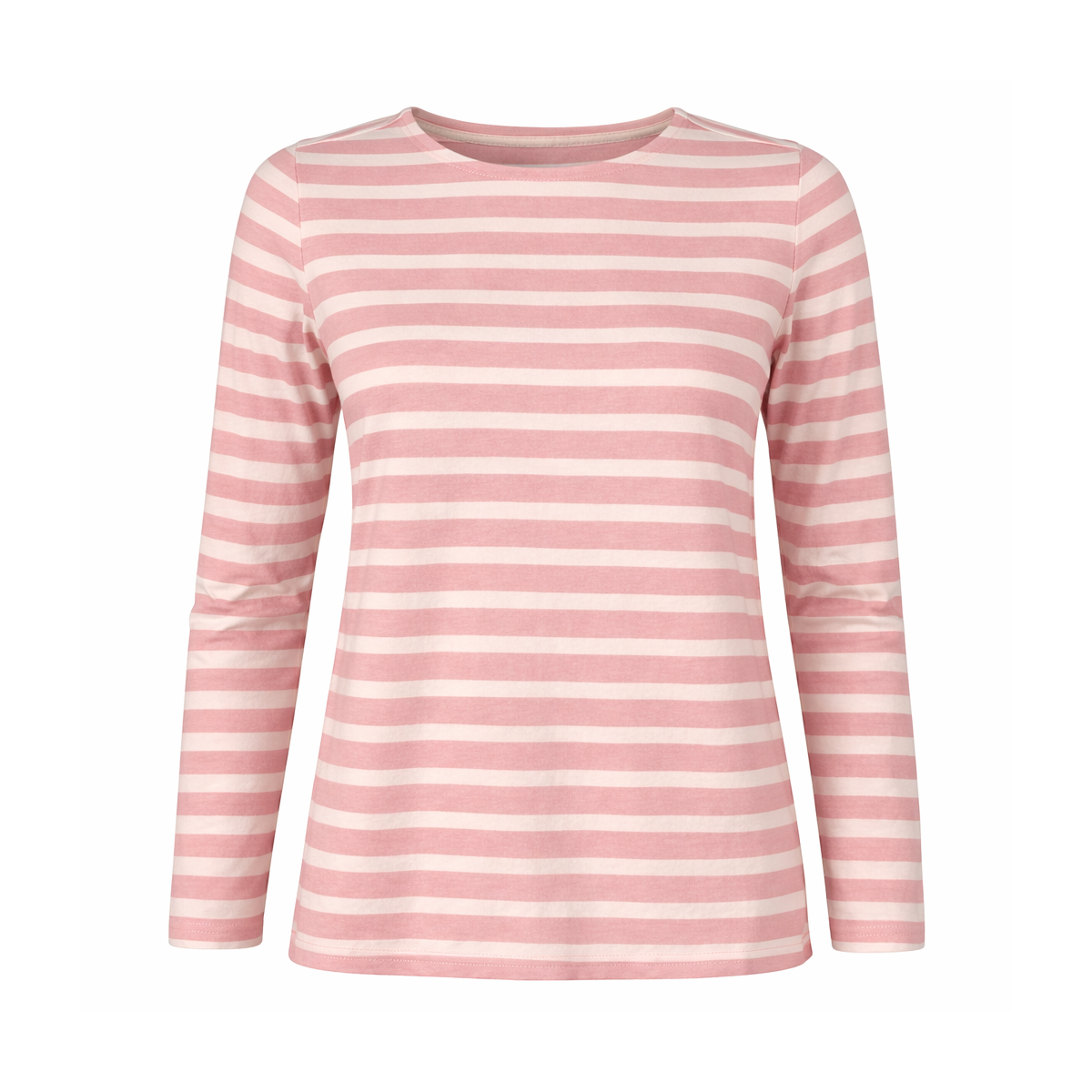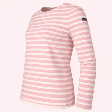 Marinière femme fond rose rayé écru.