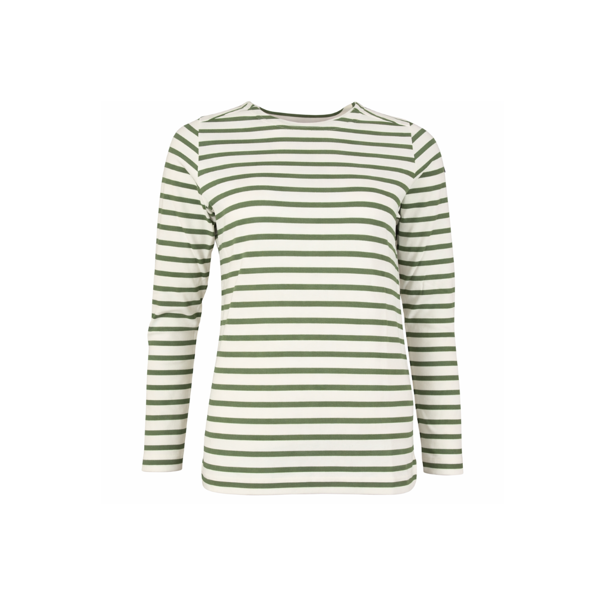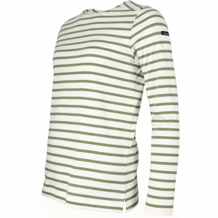 Marinière femme écru/vert ; l'incontournable style marin revisité.