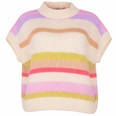 Pul sans manche Bellerina, rayé anis, rose, beige ; une pièce lumineuse, tout en légèreté.