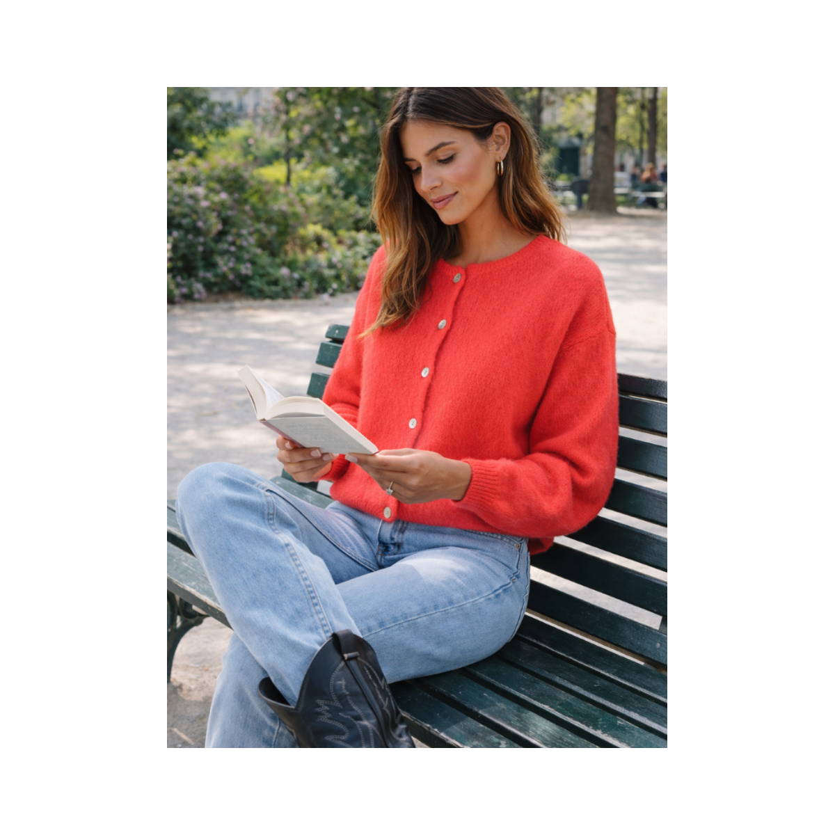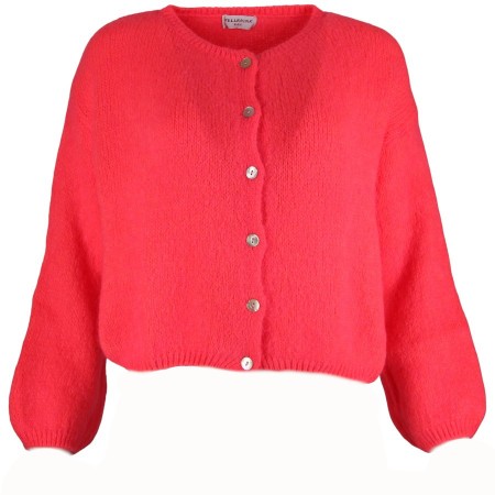 Gilet manches longues, coloris rose orangé ; une vraie caresse sur la peau.