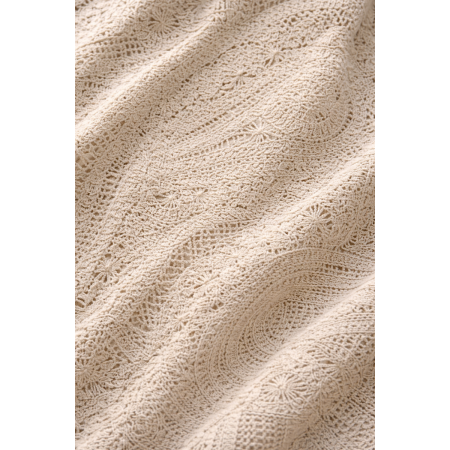 Ce pull en 100% coton séduit par son travail de maille ajourée, très tendance, finement dessinée avec des motifs floraux et graphiques, apportant relief et légèreté à la silhouette. Sa teinte écrue lumineuse pouvant se coordonner facilement, pour un style à la fois frais et raffiné;