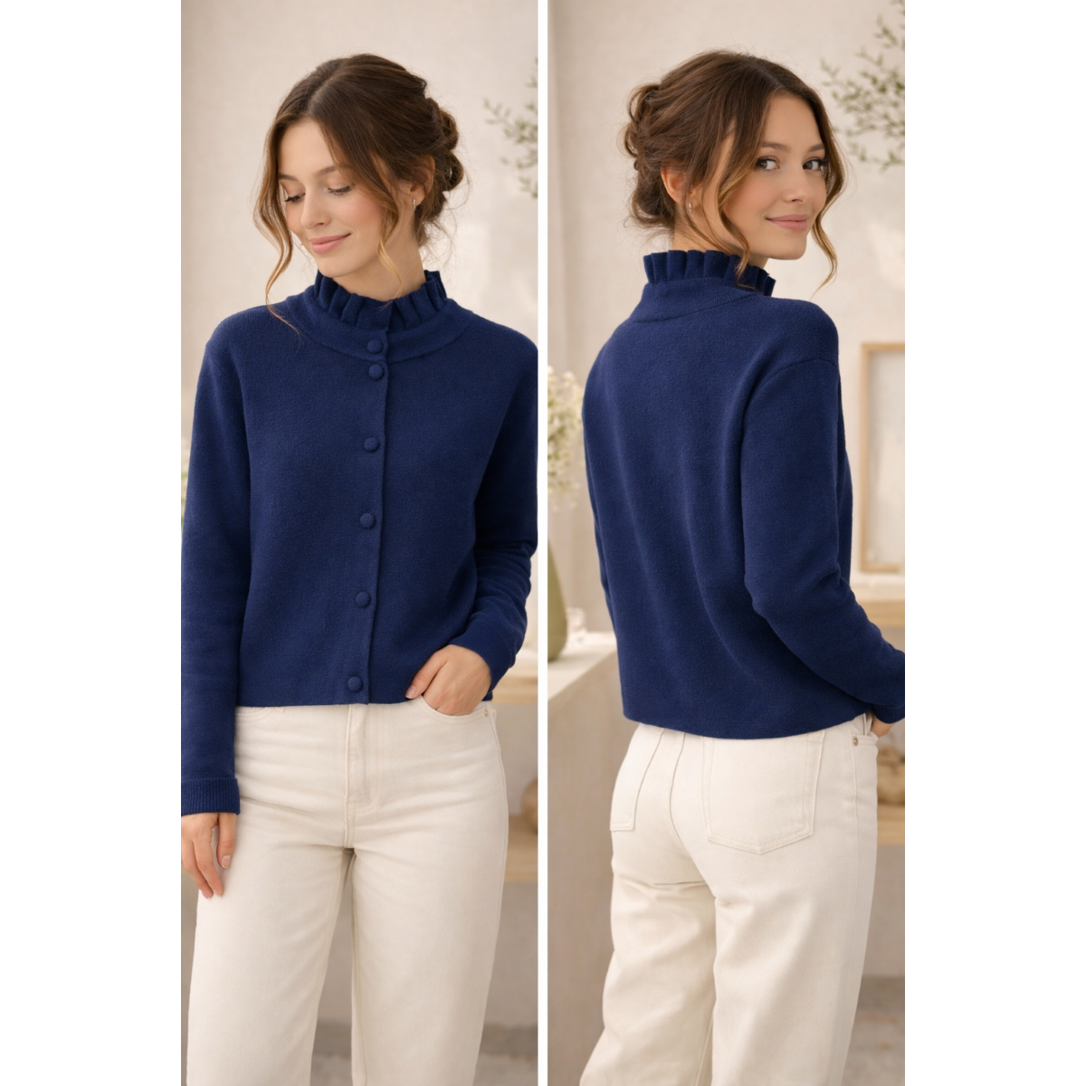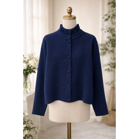 Référence: GILET CARDIGAN OUESSANT MARINE - COL VOLANT