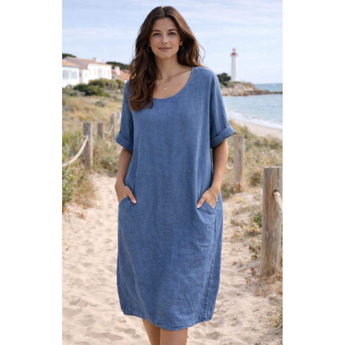 Référence: ROBE 100% LIN NATUREL BLEU JEAN 761