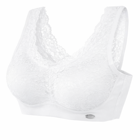 Brassière dentelle Minelli Nima blanche ; confort invisible et maintien parfait.